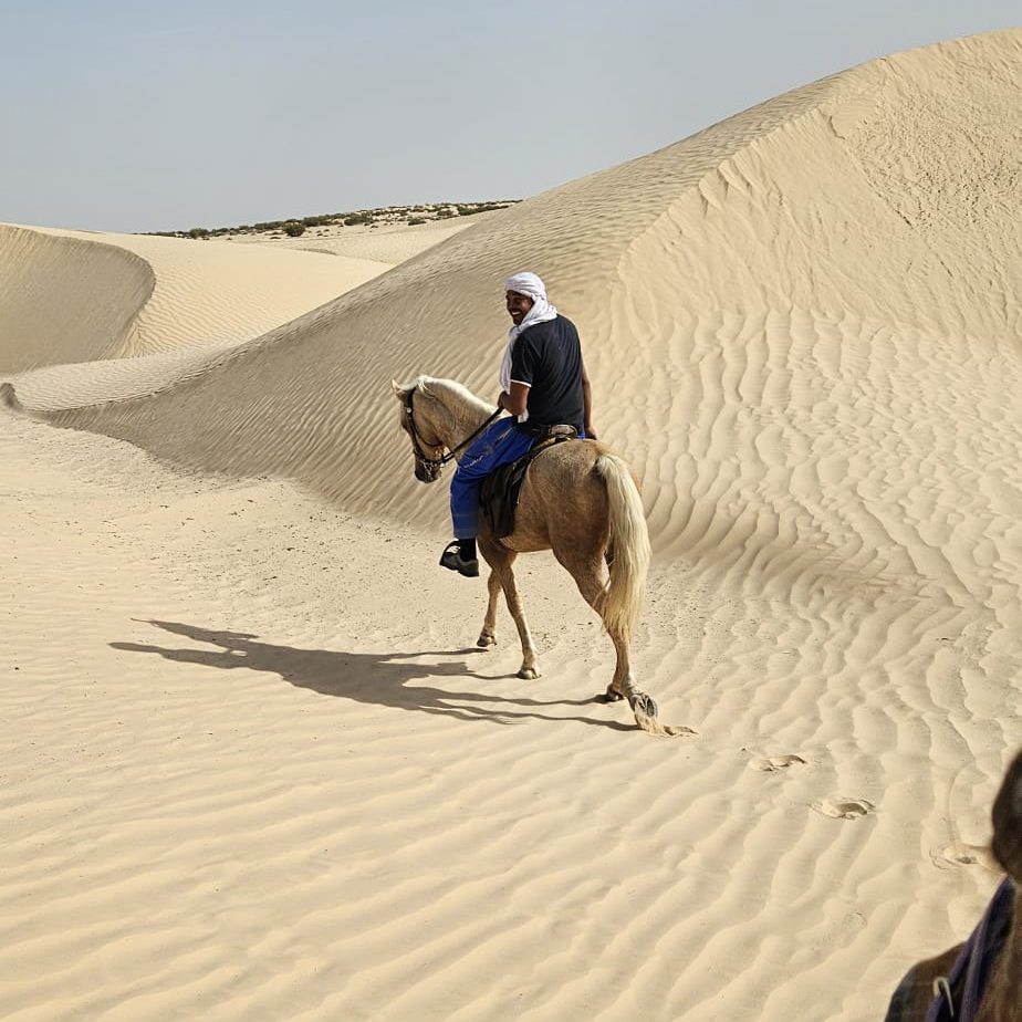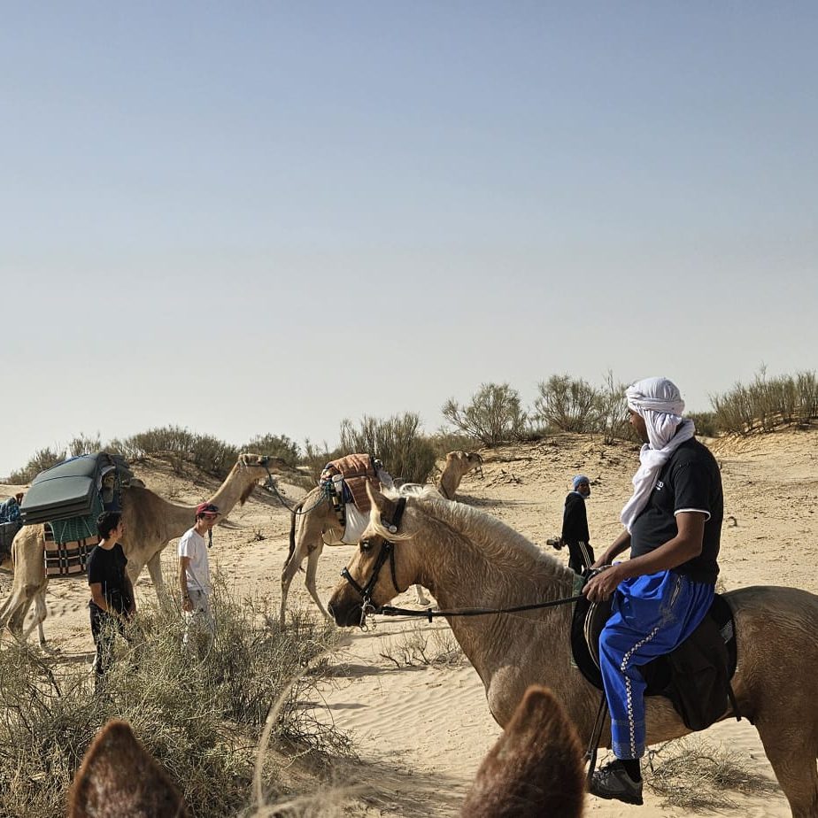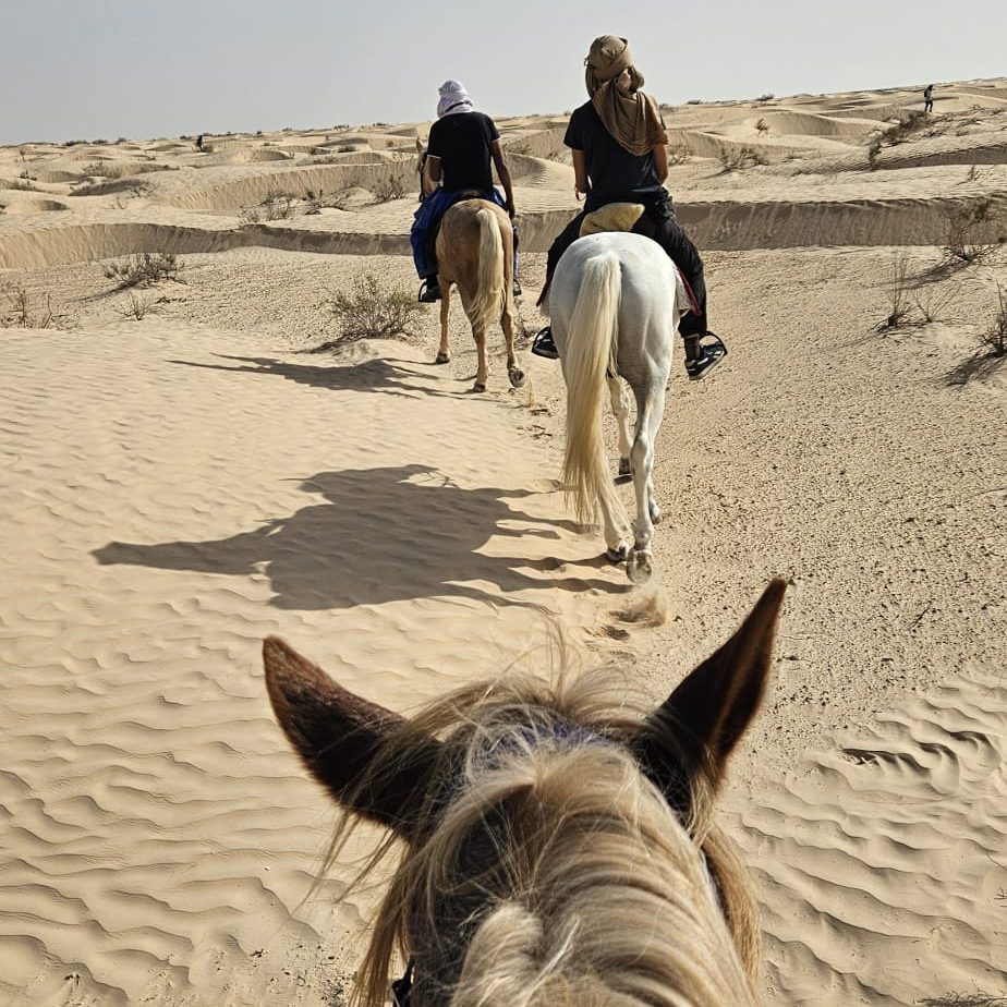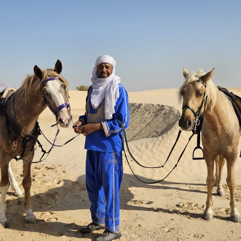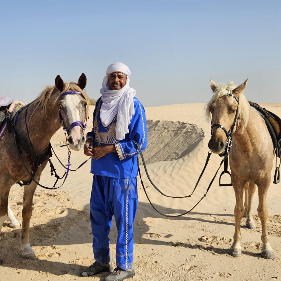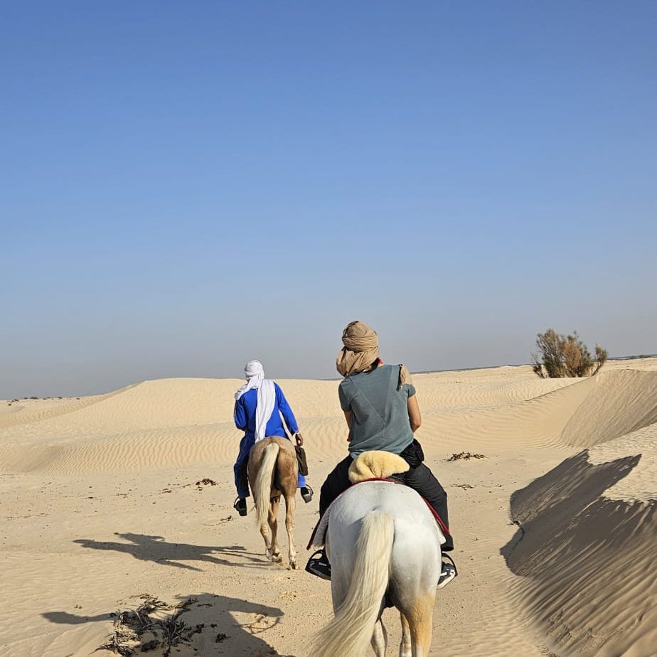 Plongez dans une aventure équestre inoubliable au cœur du désert tunisien. De Djerba aux dunes infinies du Grand Erg Oriental, vous parcourrez à cheval des paysages fascinants, entre oasis cachées, chotts salés et bivouacs sous les étoiles. Ce voyage unique vous mènera sur les traces des nomades, à travers des sites spectaculaires comme Matmata et Douz, la mythique « porte du désert ». Entre chevauchées enivrantes, veillées autour du feu et rencontres authentiques avec la culture bédouine, cette expédition est une immersion totale dans l’âme du Sahara. Prêt à vivre une aventure hors du temps ?. + En savoir plus